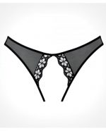 Seduce him with feisty flirtations in this provocative bikini panty featuring an all over sheer mesh with thick sides, an open crotch panel with an ornate crochet lace trim, and an open rear with booty shaping straps. Color Black. One size fits most. Waist 26 inches to 30 inches. Low waist 28.5 inches to 32.5 inches. Hips 36 inches to 40 inches.