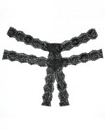 Adore Collection by Allure Lingerie Southern Rhapsody crotchless panty. Color Black. One size fits most. Waist 26 inches to 30 inches. Low waist 28.5 inches to 32.5 inches. Hips 36 inches to 40 inches.