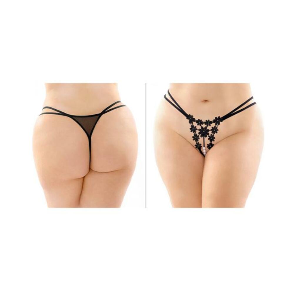 Aster Crotchless Strappy Flower Pearl Thong Black Queen