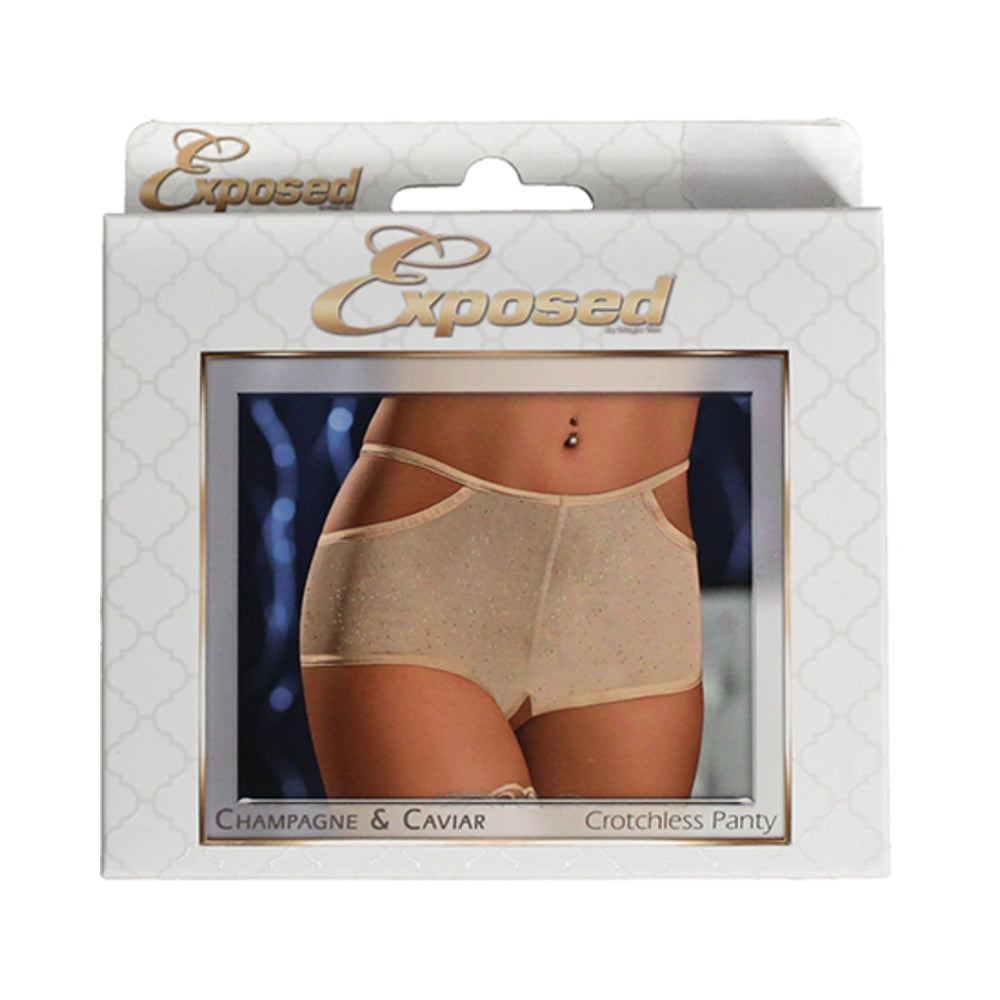 From the Exposed by Magic Silk Collection, this style includes: A panty featuring soft and breathable mesh, plush satin elastic, peek-a-boo cutouts at the waist, crotchless design, and fullback coverage. COLOR: VANILLA SKIN@np2020-53