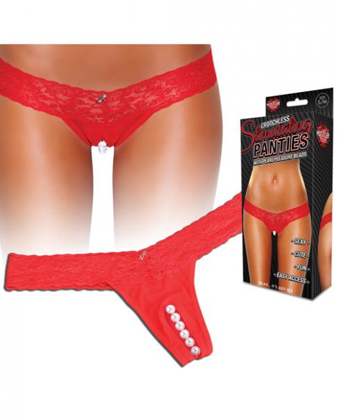 Crotchless Thong Clitoral Stimulating Beads Red S/M
