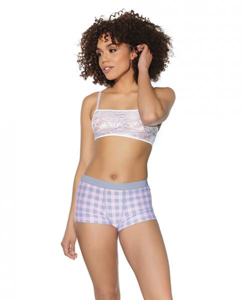 Crystal Pink Buffalo Check Print Short Grey/pink O/s