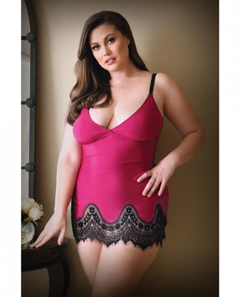 Curve Melanie Lace Trim Chemise & G-string Raspberry 3x/4x