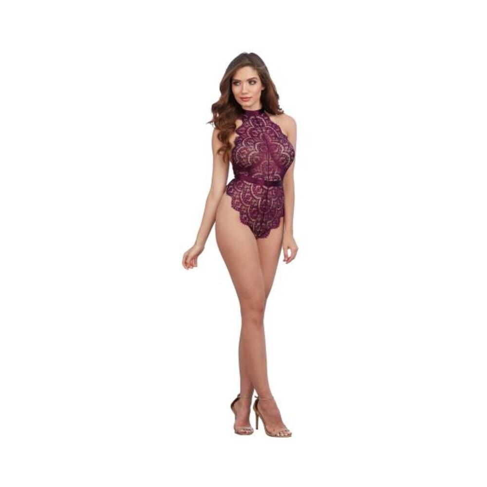 Dreamgirl Eyelash Lace Teddy With Halter Neckline And Low, Open Back With Adjustable Tie-back Ribbon