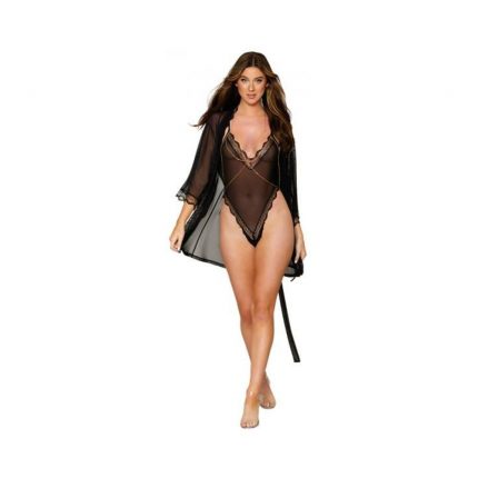 Dreamgirl Mesh Robe & Strappy Back Teddy With Lace Trim Black 1xl Hanging
