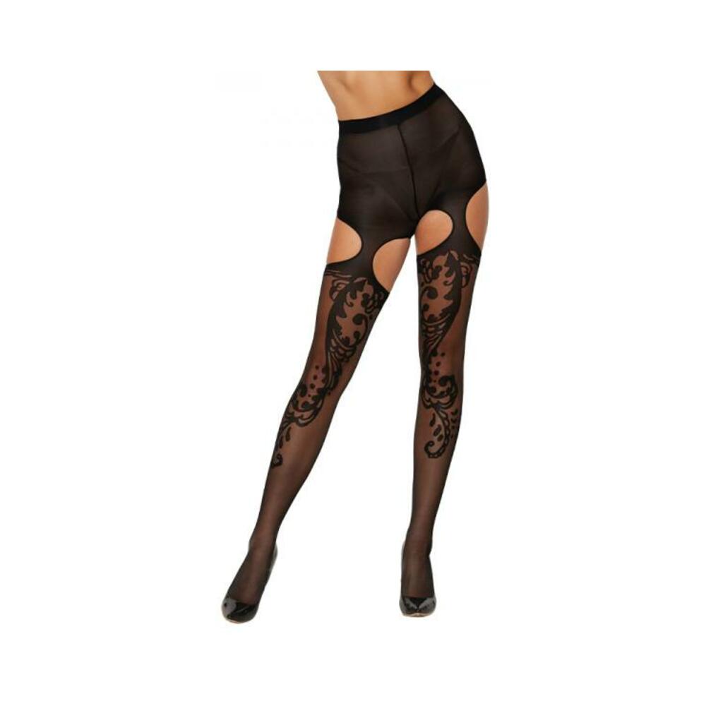 Dreamgirl Ornate Pattern Garter Pantyhose Black O/s