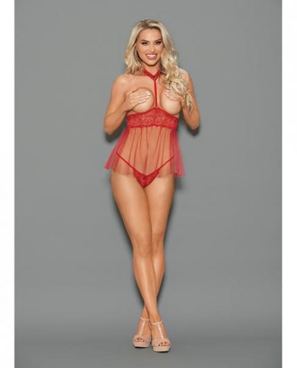 Euphoria Tri Top & Crotchless Side Tie Thong . From Escante. One Size. Size: 2-14. Cup: B/C. Bust: 32in.-38in. Waist: 24in.-32in. Hip: 34in.-40in. Weight: 90-160lbs.