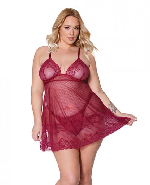 Holiday Soft Underwire Babydoll & Thong Merlot 1x/2x