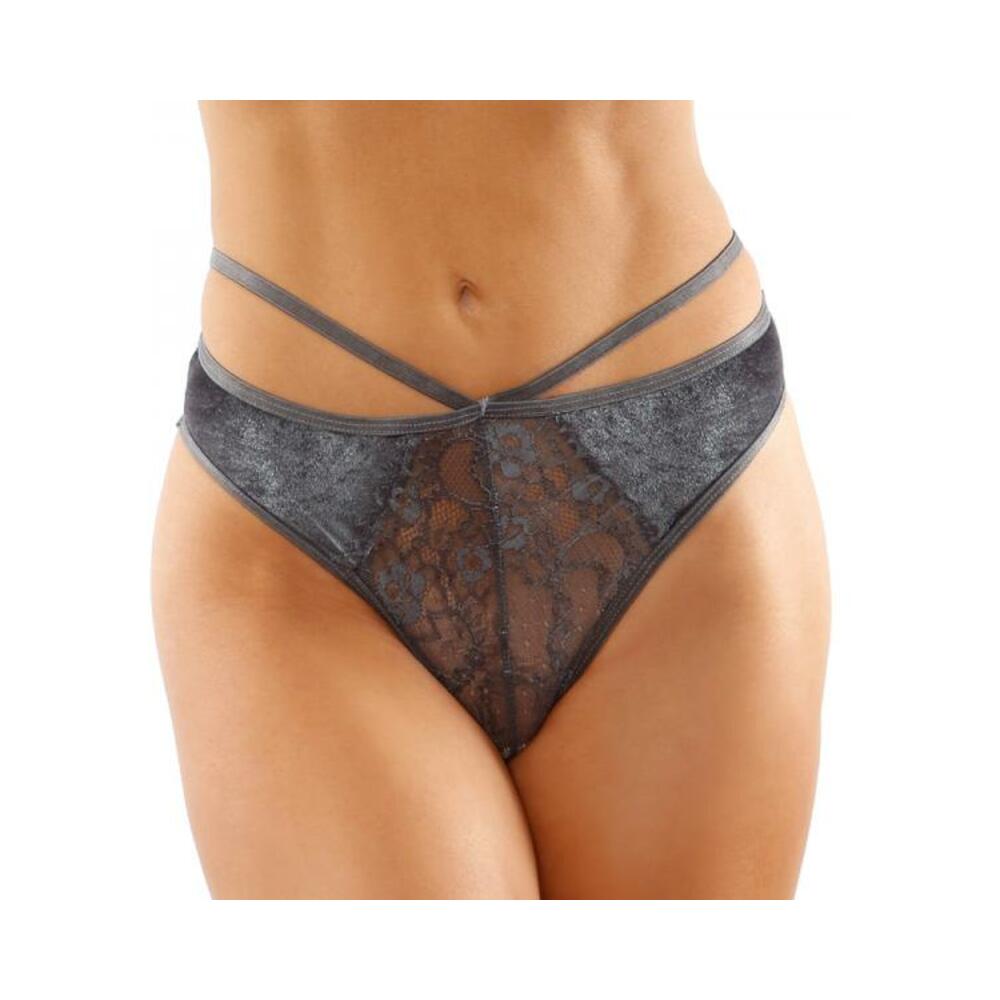 Kalina Velvet Strappy Cut-out Thong With Keyhole Back Gray S/m