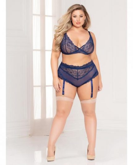 Knit Jersey Bralette with Contrast Lace and Shorts from Seven Til Midnight lingerie line. Ladies size small. Sizes 2 to 6. Cups A/B. Bust 32 inches to 34 inches. Waist 24 inches to 26 inches. Hips 34 inches to 36 inches.