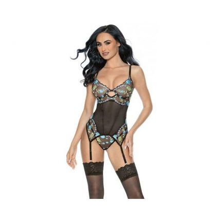 lace & Mesh Long Line Bra, Garter Skirt & G-string Midnight Blue Medium