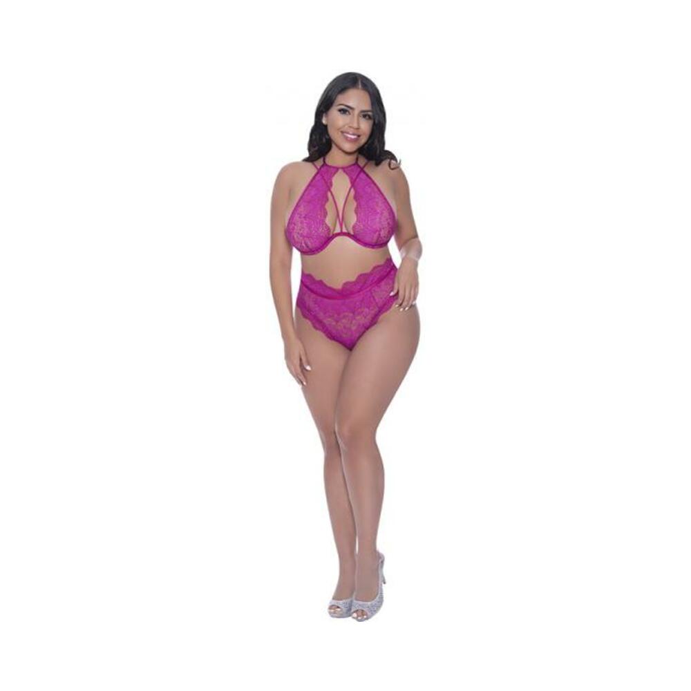 Magic Silk Berrylicious Halter & Lace Up Panty Set Raspberry Queen Size