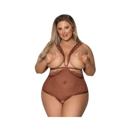 From the Exposed by Magic Silk collection, this style includes: a teddy featuring a blend of mesh and lace throughout, a keyhole design in the front, elastic and adjustable shoulder straps with black sliders, subtle black O-ring details in the back, and a criss-cross strappy design across the back. Soft lace and stretchy mesh in a mesmerizing shade of black.