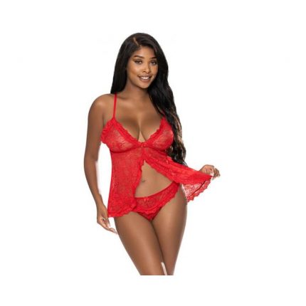 Magic Silk Ooh La Lace Babydoll & Split Crotch Panty Set Red Queen