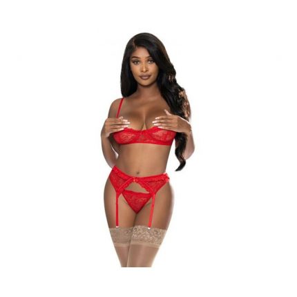 From the Exposed by Magic Silk collection, this style includes: a lace demi bra featuring elastic adjustable shoulder straps with black-tone sliders and hook-and-eye closures in the back, a lace garter with a satin black bow and adjustable straps and black-tone sliders, and a matching lace tanga. A staple favorite with black lace that is soft and designs that are oh-so flirty. 90% Nylon, 10% Spandex