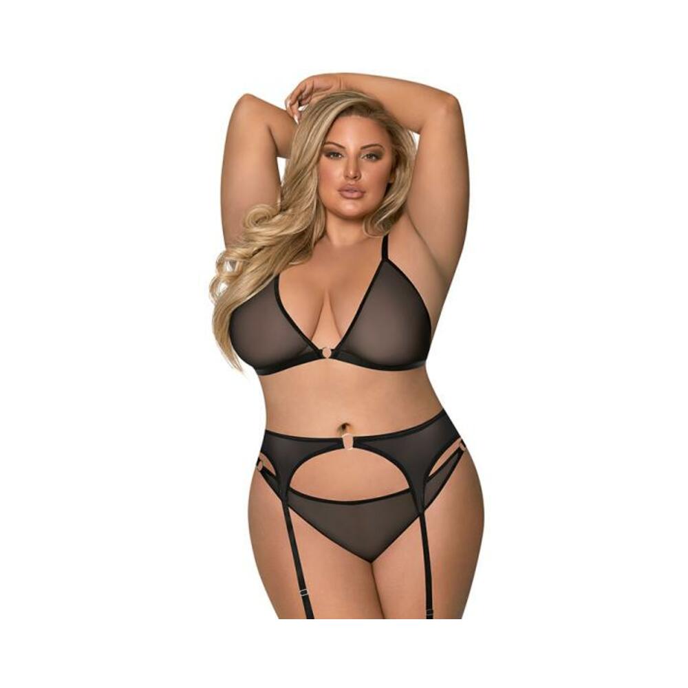 Magic Silk Sassy Bra, Garter & Rouched Panty Black Queen