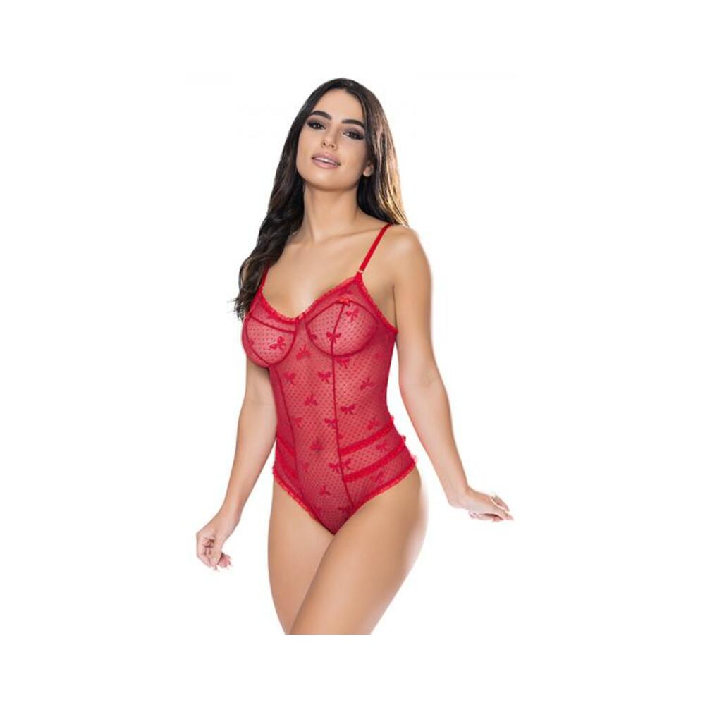 Magic Silk With Love Cheeky Teddy With Snap Crotch Red L/xl