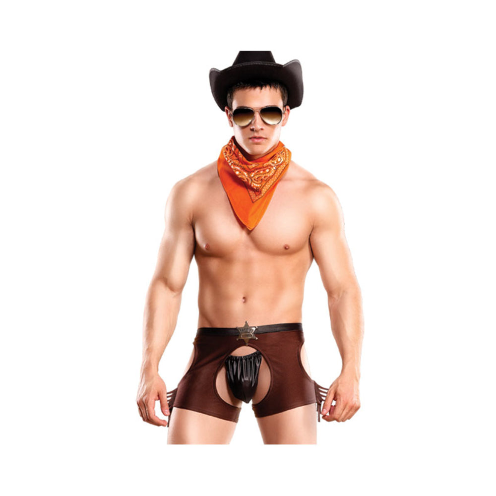 Costumes – Jolly Rancher Includes: Short, Badge, & Bandanna Fabric: 85% Polyester 15% Spandex Washing Intructions: Machine wash cool. No bleach. Wash dark colors separately. Tumble dry cool. Remove Promptly. Cool Iron. Do not dry clean. Color: As shown. Hat and boots not included. Size: L/XL