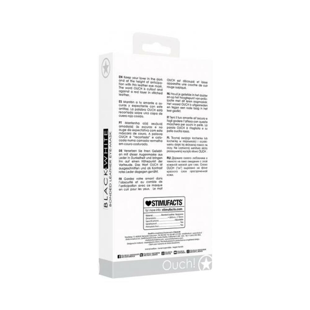 Ouch! Black & White Bonded Leather Eye Mask Ouch With Elastic Straps Black