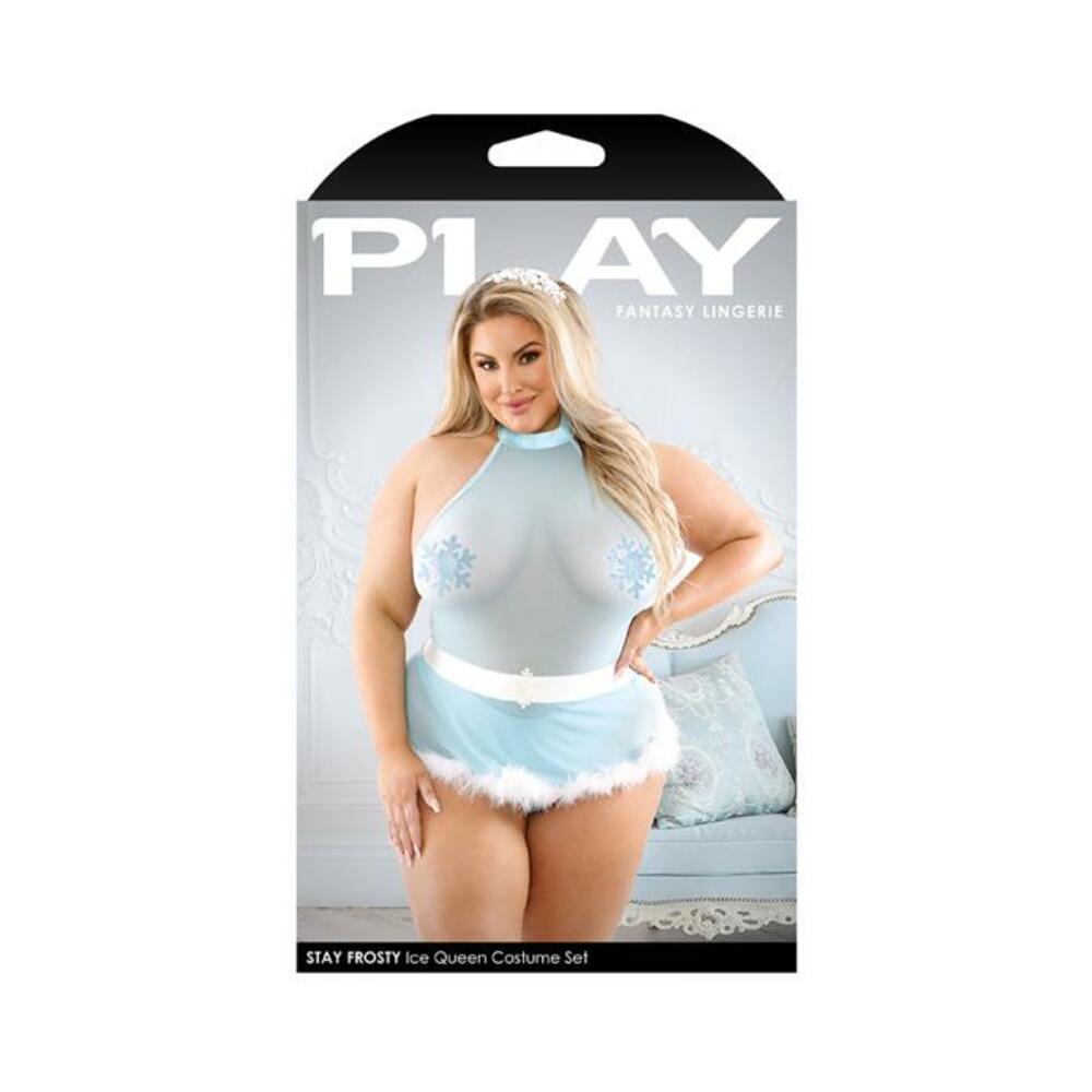 High-Neck Teddy with Snap Closure, Skirt with Marabou Trim, 1 Pair Snowflake Pasties and Snowflake Headband Brand: Play Features: 4-piece set Mesh teddy with snap closure Skirt with marabou trim 1 pair of snowflake pasties Headband Materials: 80% Nylon, 20% Spandex Color: Light Blue Washing Instructions: Hand wash separately in cold water. Do not bleach. Flat dry. 1X/2X Size: 14-18 Bust: 40″-46″ Hips: 44″-49″