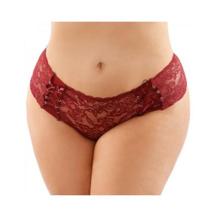 Caged Lace and Microfiber Brazilian Panty Brand: Bottoms Up Materials: 80% Nylon, 20% Spandex Color: Black Washing Instructions: Hand wash separately in cold water. Do not bleach. Flat dry.