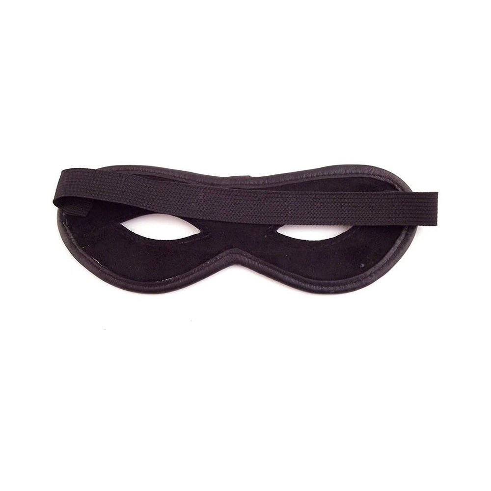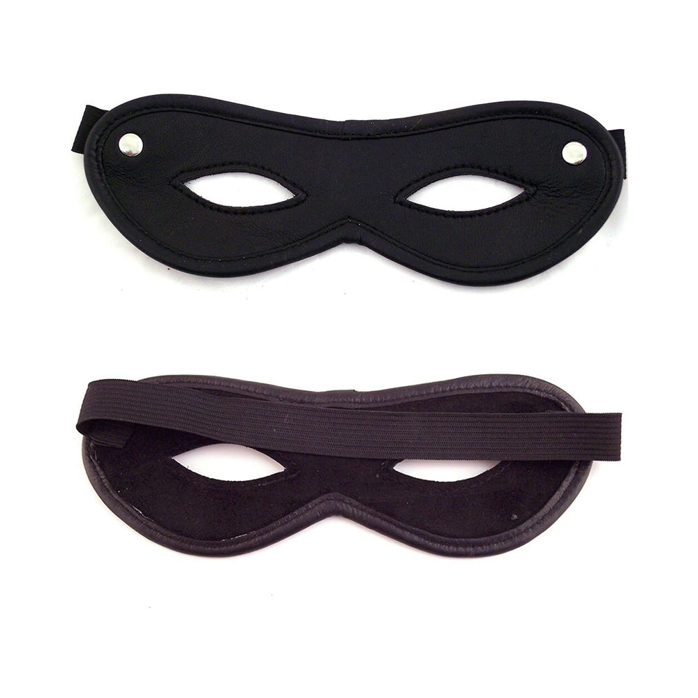 Leather eye cut mask features elastic strap to fit all sizes. Measures 7.9 in. by 2.75 in.