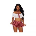 School Girl Fantasy Off the shoulder short sleeve mesh top, pleated mini skirt and tie From Elegant Moments