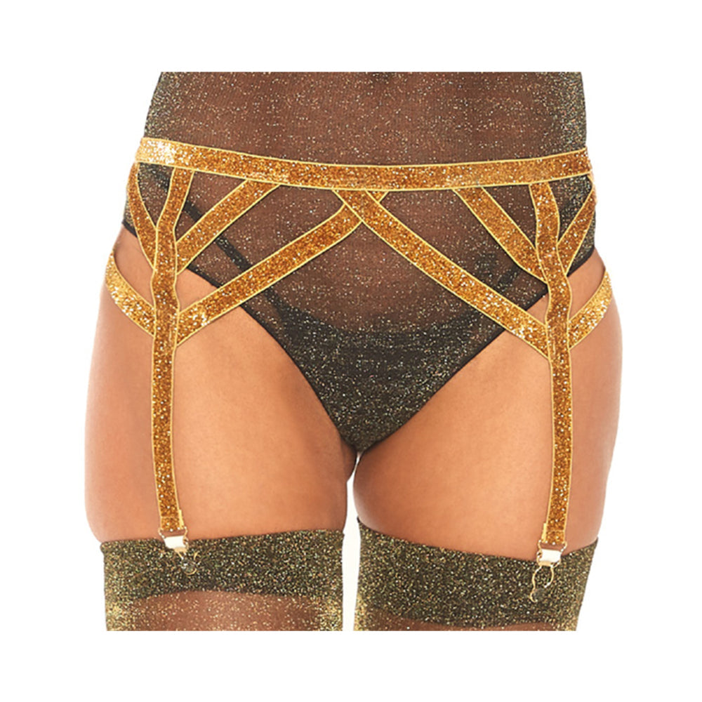 Shimmer Lurex Elastic Garter Belt. Gold O/s