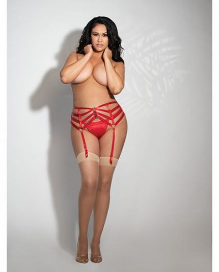 Strappy Elastic Garterbelt W/front Zipper Red M/l