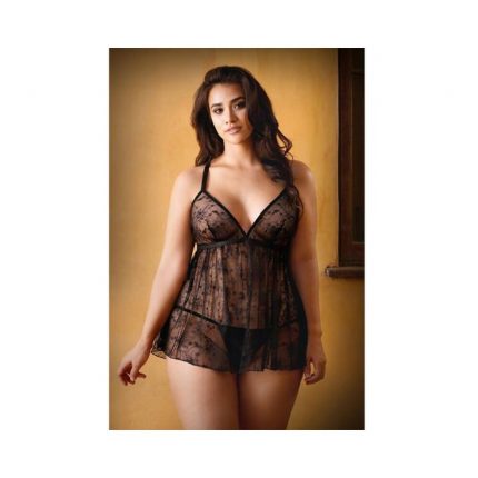 Features: Sheer Mesh Fabric, Underwire Balconette Cups, Wide Elastic Cage Detailing, Cheeky Back, Detachable Garters Materials: 80% Nylon 20% Spandex Color: Black S/M – Size: 2-6 Bust: 32″-36″ Hips: 33″-38″
