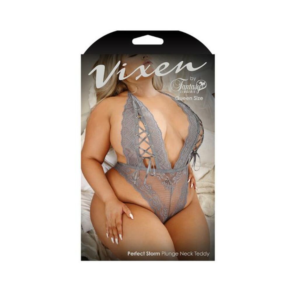 Vixen Perfect Storm Lace Plunge Teddy With Lace-up Detail Gray Queen